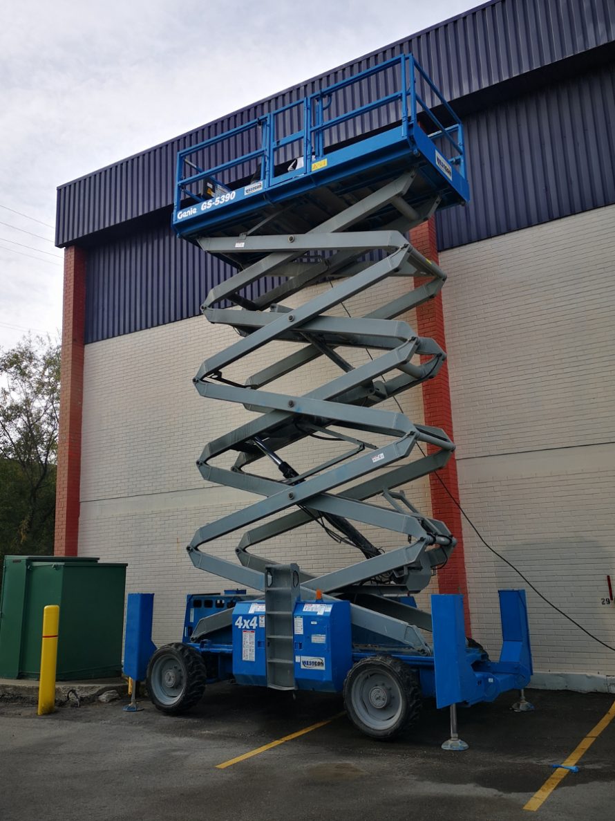 We paint industrial buildings in Winnipeg too. This warehouse needed a fresh coat of paint. We’re happy to reach great heights; with a little help from our friend the scissor lift, this building looks great.